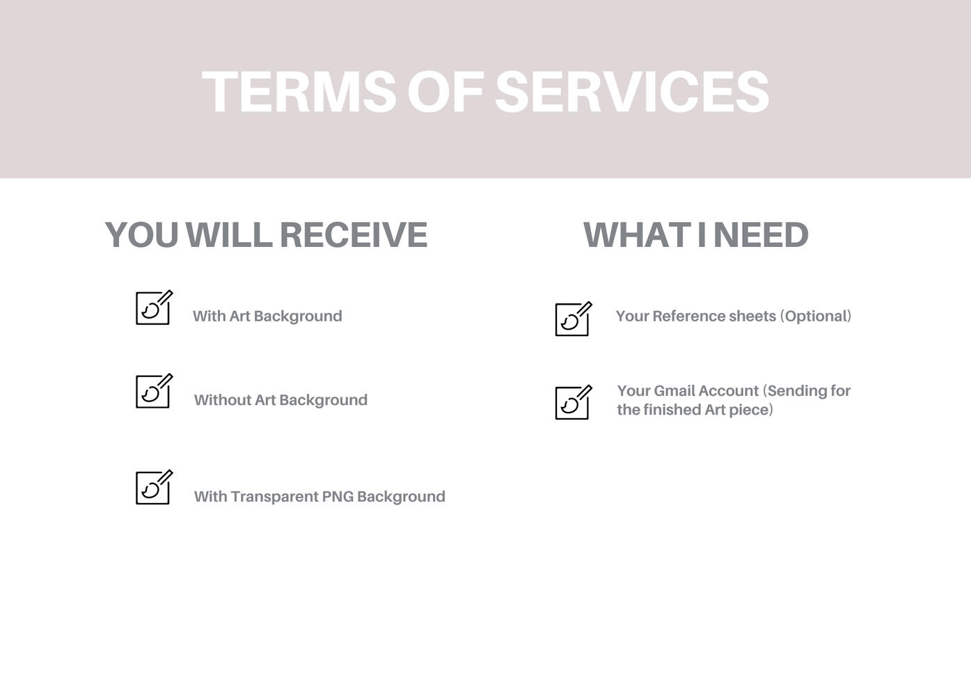 | FULL COLORED ART | 16$ | 18$ | 20$ | 25$ |